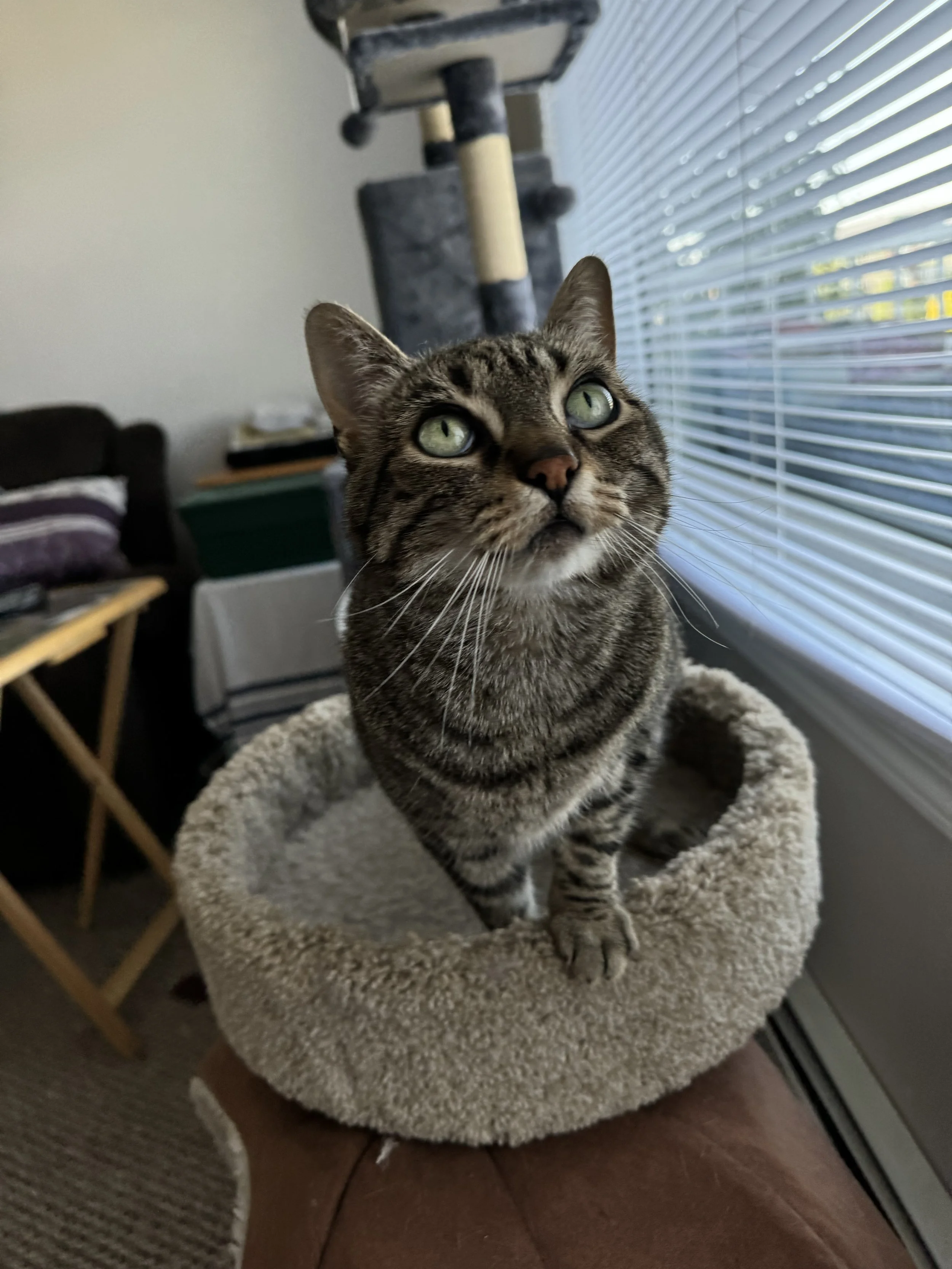 “Chloe is the absolute best. Our cat is very grumpy, he hisses and attacks most people. Chloe put in the effort to win over his cold, angry heart; she is an angry cat whisperer. She also provides the best updates, her descriptions always make us laugh, and she should have worked for national geographic in another lifetime, the pictures she takes are phenomenal. Our daily update about our cat is the highlight of our day when we take vacations. If we get anyone else as a cat sitter we come home to a moody,depressed, and cold shoulder cat. When Chloe takes care of him, he is friendly and cuddly when we return home.”